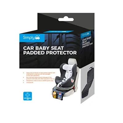Extra padded car baby seat protector to help protect your upholstery against seat indentations, scratches, dirt and spillages Compatible for all rear or forward facing car seats and designed for easy access to isofix points Two extra large mesh storage pockets for holding baby essentials, toys or snack Secure fit due to adjustable head rest strap and tuck flap which will secure in place Non slip waterproof surface which is designed to be easy to clean