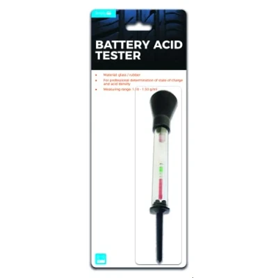 MEASUREMENT RANGE — 1.10 - 1.30 g/ml Red/Recharge: Ranges from 1.100 - 1.225. or below 12.25 Volts indicating the battery is discharged/flat. White/Fair: Ranges from 1.225 - 1.260. or 12.05-12.60 Volts indicating that the battery requires attention / Charging Green/Good: Ranges from 1.260 - 1.300. or 12.60-13.00 Volts indicating the battery is fully charged and serviceable. Care must always be taken removing battery cell caps and handling battery Acid when testing a battery. PROFESSIONAL TOOL — for professional determination of the state of charge and acid density. EASY TO USE — simple and quick to use - (note battery acid is dangerous and the correct personal protection should be worn). HIGH QUALITY MATERIALS — we use high quality glass and rubber to ensure the product is safe to use.