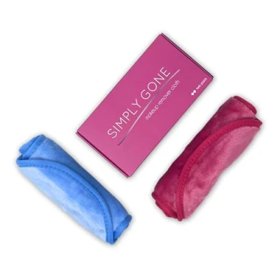 FAST AND EASY. Erase all your make up with our superior quality, super soft makeup remover cloth. Use Simply Gone daily with water for beautifully clean and fresh skin. A staple for your facial cleansing routine. MULTI-FUNCTIONAL. Our magic makeup cloth will remove all traces of makeup and dirt, even waterproof mascara. Use one side to wash off your make up and the other side to massage and exfoliate your skin. HIGH QUALITY, LONG LASTING & ECO-FRIENDLY. Unlike small make up pads, our large makeup eraser cloths can be reused several times before washing. When needed, pop them in the washing machine. No need for costly disposible makeup remover wipes that harm our enivonment. IDEAL FOR ALL SKIN TYPES. Super soft and non-irritating, our face cloths are suitable for sensitive skin. For use all over your face, including the delicate eye area. Our makeup remover cloth lifts away makeup, dirt, dead skin cells, daily pollutants and oil. THE PERFECT PACKAGE. Two makeup cloths in each pack, so you have one available while the other is in the wash. Lightweight and easy to pack, they are a travel essential. A beautifully packaged gift for a makeup lover.