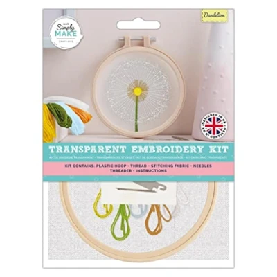 Simply Make Adults Dandelion Sewing Needle Stitch Embroidery Hobby Kit, Makes The Perfect Present For Any Creativity Enthusiast, or Hobbyist, Ideal Beginners And New Starter