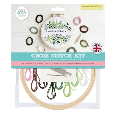 Simply Make Cross Stitch Kit Personalised Foliage, Multicoloured, Single Craft Kit, Kits for Adults, Sewing and Embroidery Home Crafts, Threads Included