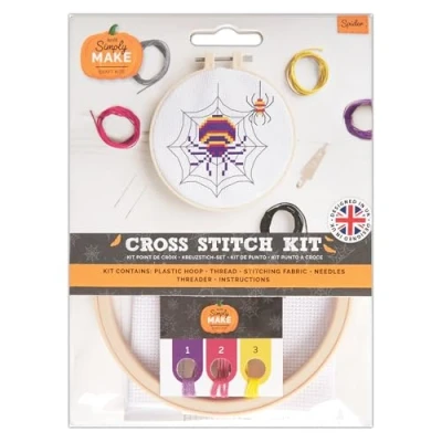 Simply Make Cross Stitch Kit Spider Design Halloween, Hoop, Embroidery Thread, Fabric & Needle, Perfect For Beginners, Starter Craft Kit, Great Gift, Hobbyists, Halloween Home Décor