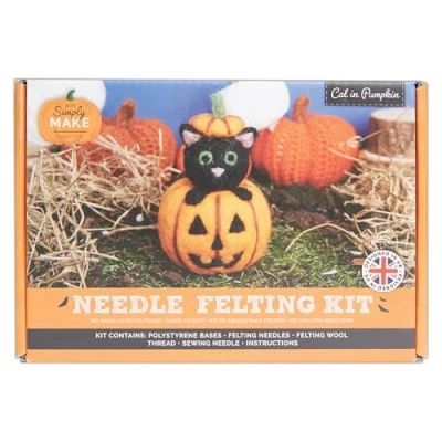 Simply MAKE Needle Felting Kit Halloween Cat in Pumpkin, Including Wool, Needles, Tools, For Beginners, Craft Kits, Starter Hobby Craft, Decoration, Gift, Hobbies Crafty Enthusiasts