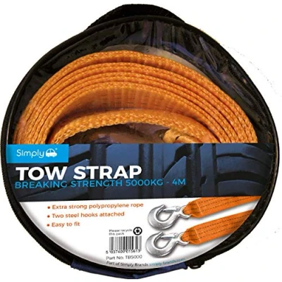 Simply's standard Tow Ropes are all TUV approved and RoHS compliant with extra strong polypropylene rope Easy to fit Zip packaging storage 5000Kg Breaking strength Two steel hooks attached