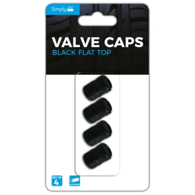 Simply VAL03 Pack of 4 Black Flat Top Valve Caps Easy Installation