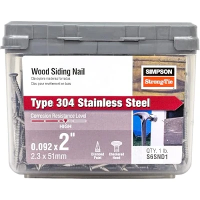SIMPSON S6SND1 Strong Tie Siding Nail, 6D X 2 in, 0.095 in Shank, 304 Stainless Steel, 2"