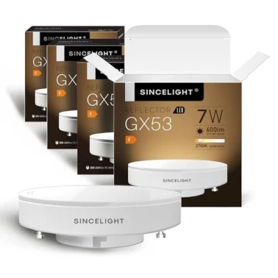 Delivers Impressive Ambient Lighting, SINCELIGHT LED GX53 Light Bulbs specifically used as accent lighting on ornamentsare, as an ideal retrofit lamp for GX53 fittings in kitchen units, display cabinets and under-shelf lighting. More even light output and no LED hot spots, by the 120° Beam Angle with Opal diffuser. Be a supplement of spot light reflector, Provides a relatively concentrated but softer light. Delivers Impressive Ambient Lighting. High Color Rending Index ( RA92 ), Be an excellent ambient light solution that provides realistic,natural and rich color. Suitable for use as ambient light to emphasise certain areas, the LED GX53 reflector is perfect for high-end residences, shops, restaurants, galleries, museums and other occasion where higher luminous effect is required. Energy-efficient replacement for traditional GX53, The SINCELIGHT LED is energy-efficient with low wattage, with it’s efficiency and performance certainly outperforms the traditional counterparts. Obviously it is one of the most effective replacements. 15,000 Hours Durable & Easy to Replace, 25 times more durable than traditional GX53 Reflector. Since their shape and size resembles standard GX53 reflector bulbs, they are easily replaceable without additional modifications.