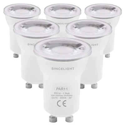 ◎ Designed to replace the halogen PAR11 >>> The SINCELIGHT LED PAR11 mini reflector series shares the same compact profile as its halogen counterparts. Available in multiple color temperature options with superior lighting efficacy, The LED PAR11 series is a best fit to multi-purpose applications: be it accent lighting for display items or ambient lighting for a cosy look and feel. ◎ Energy Saving & High Efficacy >>> The SINCELIGHT LED PAR11-Mini Reflector takes only 3W but wonderful. It delivers the same light output as it's 25W halogen reflector but consumes at least 88% less energy. Its instant-start function and long lamp life are the clear advantage over traditional halogen bulbs. ◎ Instant On Full Brightness >>> Immediately at full power and brightness, no warm-up time. ◎ With Optical Lens of 35 Degree Beam Angle >>> for offering excellent spot and focus lighting effect. ◎ Lifetime as long as 15,000 Hours >>> Low frequency of replacement and easy Installation. Standard PAR11 Reflector Shape with GU10 Base which is easy to install and replace., Weight: 0.2645547144 Pounds, Manufacturer: SINCELIGHT