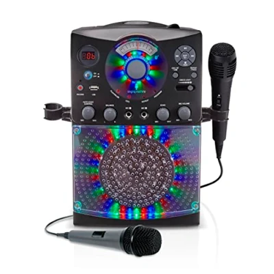 Singing Machine SML385UBK Bluetooth Karaoke System with LED Disco Lights, CD+G, USB and Microphone Black