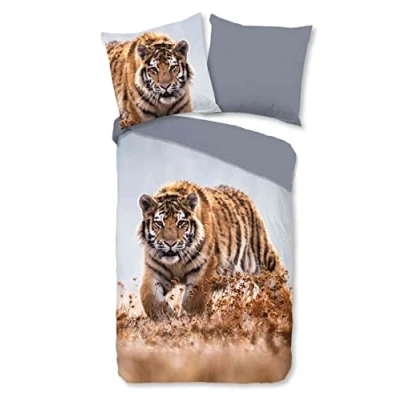 Reversible bed linen. Animal motif With zip. Material: 100% cotton. Wash at 40 °C, tumble dry at low temperature, iron on medium heat.