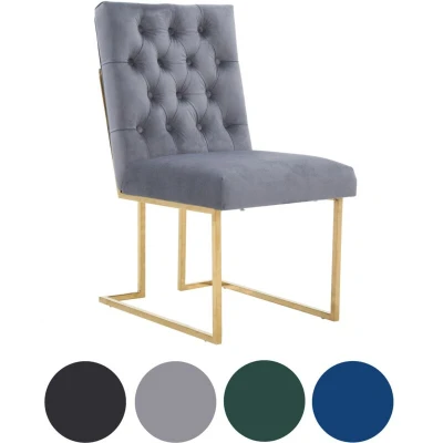 Single Grey Siena Luxury Tufted Velvet Dining Chair with Gold Frame & Legs Modern Upholstered Accent