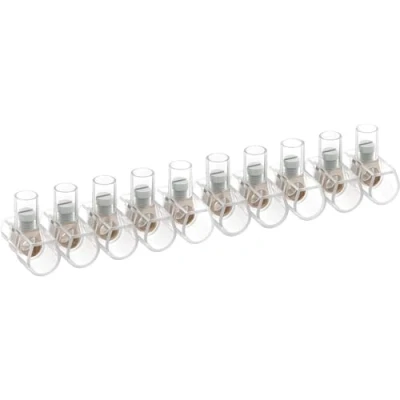 Easy detachment of terminals, leaves no residue and does not sting fingers. Terminal blocks in strips of 10 pieces each. Transparent case for excellent visibility of connection. Polycarbonate shell, brass insert, galvanised steel screws. Material: PC polycarbonate, good flexibility, transparency, stretchability, radiation resistance. Maximum operating temperature: 85°C. Voltage: 250-450 V with the IMQ seal of quality and safety.