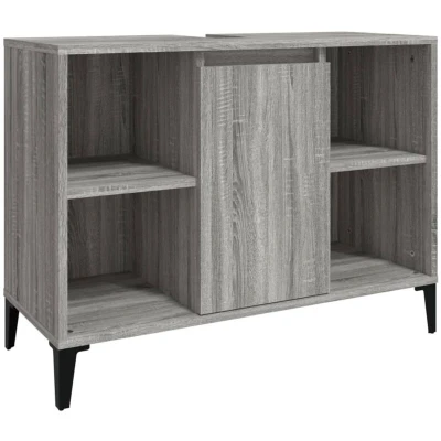 ManoManoGeneral description This sink cabinet is a great addition to your bathroom, providing a tidy and striking appearance. It features durable engineered wood with a smooth surface, ensuring strength, stability, and moisture resistance. Technical specifications Colour: Grey sonoma Material: Engineered wood, metal Overall dimensions: 80 x 33 x 60 cm (W x D x H) Flexible door installation Usage Ample storage space with 5 compartments and a door for various storage options. The top of the cabinet is ideal for placing the sink. Easy to clean with a damp cloth. Other information Warning: To prevent it from being overturned, this product must be used with the provided wall attachment device. To make assembly as easy as possible, each product is delivered with a manual. The sink is not included.