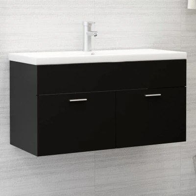 Sink Cabinet with Built in Basin Black Engineered Wood vidaXL