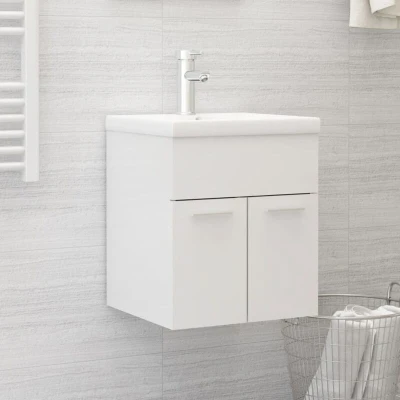 Sink Cabinet with Built in Basin High Gloss White Engineered Wood vidaXL