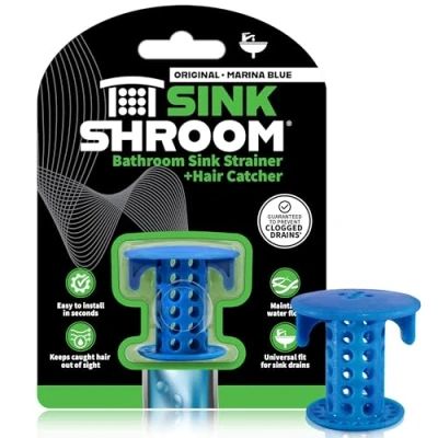 Unlike regular catchers placed over the drain, Sink Shroom fits inside, neatly collecting every hair Time to clean-up? Simply wipe Sink Shroom off and go No harsh chemicals, no more tangled messes Our sink drain strainer fits any standard bathroom sink drain and will catch every hair every time Available in six fun colours: white, grey, Blue, Green orange and the newly introduced Titan clear Our bathroom sink hair trap fits any standard 1.25" Sink drain, note: remove drain Cover to use