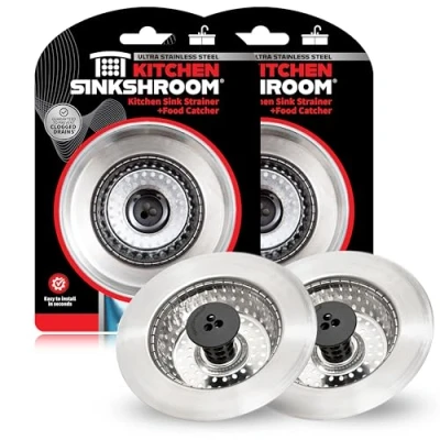 GOODBYE CLOGS - With stainless steel construction and a uniquely ergonomic design, the Kitchen SinkShroom will neatly catch food particles without stopping the flow of water EASE OF USE - The intuitive hollow center cylinder is raised high enough to prevent pots and dishes from blocking the drain-grab it to easily remove the strainer EASY TO CLEAN - No matter how much refuse or food is gathered in the basket, optimal hole placement keeps water flowing-and keeps dirty dish water from rising AWARD-WINNING - A 2019 Housewares Design Awards Finalist, our revolutionary basket fits virtually any kitchen sink drain or garbage disposal drain without any special tools International products have separate terms, are sold from abroad and may differ from local products, including fit, age ratings, and language of product, labeling or instructions.
