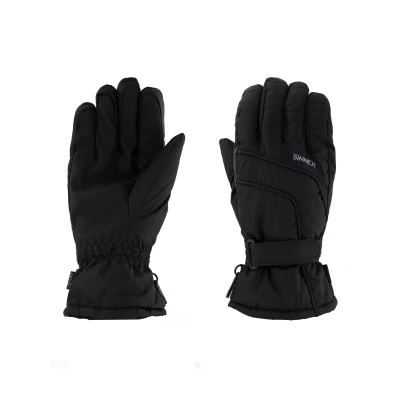 Sinner Mesa women's ski gloves combine practical protection with a straightforward design for everyday use on the slopes. They are made to fit a female hand shape and offer a reliable balance of weather resistance and grip without unnecessary complexity. The gloves feature a waterproof rating of 10,000 mmH2O and a breathability rating of 6,000 g/m²/24h. These figures indicate reliable protection from wet snow and moderate breathability during active skiing. The palm is 100% PU with DRY-S® treatment, delivering a durable, water-repellent surface that helps maintain grip on poles in damp conditions. An adjustable cuff lets you secure the glove at the wrist and helps keep out snow when moving through deeper snow or when fastening a jacket cuff over the glove. The construction focuses on straightforward usability, making these gloves suitable for resort skiing and general winter use where dependable performance and a neat fit are priorities.