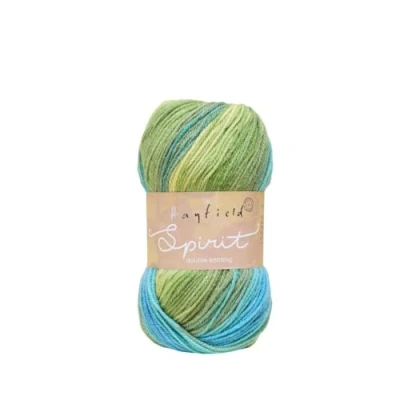 Hayfield Spirit DK by Sirdar is a wonderful self-striping double knitting yarn, optimal for adding colour to your makes without the extra work Hayfield Spirit is a colour effect yarn available in DK and Chunky weights, and a wide variety of beautiful shades High quality and hard-wearing, this versatile yarn is machine washable and will last in your wardrobe for years to come 80% Acrylic 20% Wool. 100% acrylic. Machine washable at 40 degrees/ wool cycle. Do not bleach, do not iron