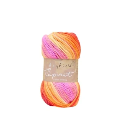 Hayfield Spirit DK by Sirdar is a wonderful self-striping double knitting yarn, optimal for adding colour to your makes without the extra work Hayfield Spirit is a colour effect yarn available in DK and Chunky weights, and a wide variety of beautiful shades High quality and hard-wearing, this versatile yarn is machine washable and will last in your wardrobe for years to come 80% Acrylic 20% Wool. 100% acrylic. Machine washable at 40 degrees/ wool cycle. Do not bleach, do not iron