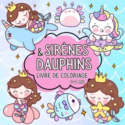 Sirènes et Dauphins Livre de coloriage: coloriage sirène pour enfants 3 à 6 ans