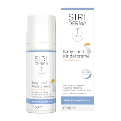 Highly compatible and skin-soothing care: the basic baby and children's cream from the Sirirderma care range is ideal for very sensitive, dry and flaky baby and children's skin. Balanced fat and moisture ratio: with a plus of protective moisture and essential fatty acids pure vegetable oils, the cream is the optimal baby and child care. Mineral and vitamin active complex: the Siriderma mineral and vitamin active complex increases the vitality of baby and children's skin and supports the skin's own regeneration. For baby acne and nappy rash: thanks to the highly tolerated formula, the Sirderma baby and children's cream is also suitable for the special care needs for baby acne and nappy rashes. Vegan & recommended by midwives: Alcohol-free skin care has been recommended by midwives and helps especially with very stressed, nourishing and allergy-ready skin.