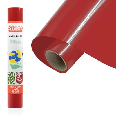 CUTTING PLOTTER COMPATIBLE - Easy Puff Siser heat transfer vinyl can be cut with any plotter for home or professional use, including: Siser Juliet, Siser Romeo, Silhouette Cameo, Cricut Explore Air 2, Cricut Maker, Brother ScanNCut, Roland, Graphtec. EASY TO APPLY: Siser Easy Puff can be applied with heat press (manual or automatic) to achieve fast, professional results that meet your expectations. Apply with a single press for about 15 seconds (high pressure). Repeated presses permanently flatten the embossed effect. VERSATILE: Easy Puff is suitable for fabrics such as 100% cotton, 100% polyester, cotton/polyester blend. CUSTOMIZE WITH CREATIVITY: Apply Easy Puff on T-shirts, t-shirts, sweatshirts, accessories and textile decorations to give a unique touch to your projects. Hand wash or cold water wash