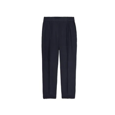 Jogger trousers in linen, high waist with elastic motif, men's pockets, pleat pattern on the front 100% linen