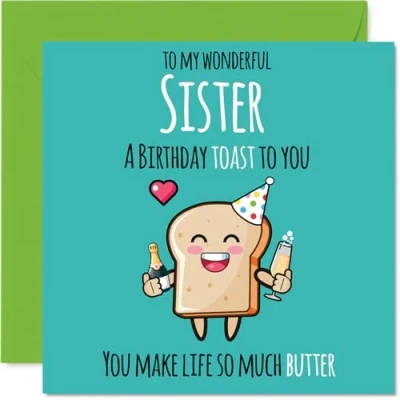 Sister Birthday Card Cute Toast Happy for from Brother Sibling, 145mm Bday Greeting Cards