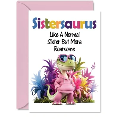 Sister Birthday Card Roarsome Sistersaurus Happy for from Brother Sibling, A5 Dinosaur Bday Greeting Cards
