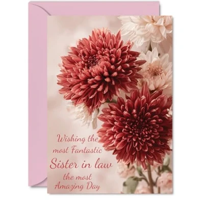 Sister in Law Birthday Card Red Chrysanthemums Happy for from Brother Sibling, A5 Flowers Bday Greeting Cards