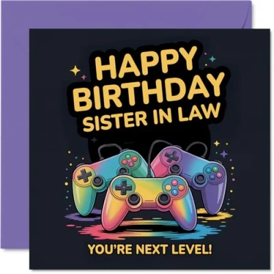 Sister in Law Birthday Card Youre Next Level Happy for from Brother Sibling, 145mm video game controller design Bday Greeting Cards