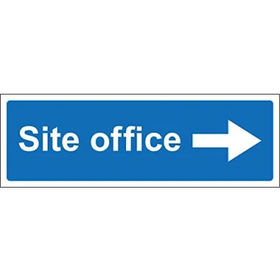Site office right directional arrow Sign 3mm Aluminium sign 300mm x 100mm Digitally printed and laminated for extra durability 10mm Radius rounded corners, no sharp edges, Manufacturer: KPCM Display ltd