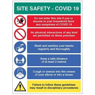 Site Safety COVID19 no physical interactions, wash hands, 2 metre policy, use tissues 4mm fluted 450x600mm