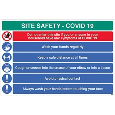 Display and advise staff and visitors of key information relating to COVID-19 protocols Manufactured using a 4mm thick fluted polypropylene material Perfect for temporary site signage – strong, lightweight and waterproof, 100% recyclable Designed and manufactured in the UK