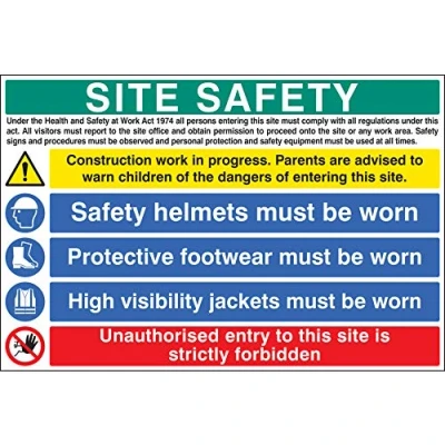Site Safety hard hat, vest and boots Rigid PVC Sign