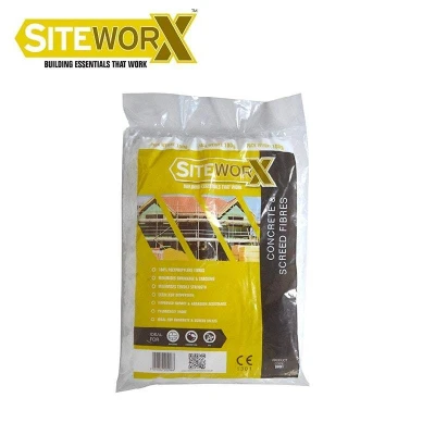 SITEWORX Concrete and Screed Fibres are made from durable 20mm polypropylene. They minimize shrinkage and cracking in concrete and screed mixes, enhancing quality and longevity. Suitable for both trade professionals and DIY enthusiasts, these fibres ensure high standards of safety, workmanship, tidiness, and productivity on-site. The SITEWORX range offers a variety of essential building and DIY products, catering to both professional and DIY needs. A range of pack sizes is available to fit various installation requirements. These fibres are designed for easy integration into building projects, providing a reliable solution for maintaining structural integrity. With consistent quality, SITEWORX supports high-standard construction, meeting the demands of modern building projects.. SITEWORX Concrete and Screed Fibres - 100g White Polypropylene