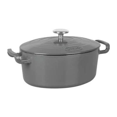 Sitram 715406 Sitrabella Casserole Oval Enamelled Cast Iron Length 26 cm 4 Litres Grey Enamel Exterior White Interior All Heat Sources Including Induction Ideal Meal for 5 Guests