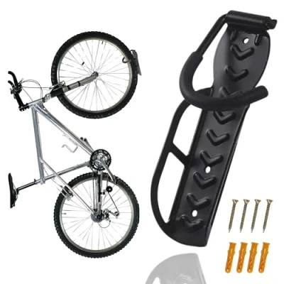 SECURE BIKE STORAGE - Premium quality wall-mounted hanger with reliable strength to hold up to 20kg; perfect for urban cyclists and mountain biking enthusiasts seeking a robust mount for their bicycles. EASY INSTALLATION - User-friendly design with a complete set of fixtures, clear, concise instructions for quick assembly make this hanger a favourite for DIY enthusiasts and practical homeowners. COMPATIBILITY - Universal fit for a wide array of bikes; from touring bicycles to trail-ready mountain bikes, this hanger is designed to cater to professionals and hobbyists with diverse cycling preferences. UK Brand you can trust. SPACE-SAVING - Perfectly constructed with dimensions of 26 x 13 x 7 cm, our hanger complements interior designs and efficiently utilises living spaces, ideal for apartments, small homes, garage and storage rooms. DEDICATED TO CYCLISTS' - Conceived with the cyclist’s lifestyle in mind, ensures your kids, family, road or mountain bike is presented prominently and is accessible for spontaneous rides or scheduled training sessions.