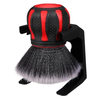 Large Cleaning Surface: The oversized brush head with soft silk bristles is perfect for cleaning large areas such as car bumpers, grills, and polished or aluminum rims. Gentle on Surfaces: Designed with synthetic silk bristles, the brush is safe for delicate surfaces, ensuring effective cleaning without scratches. Ergonomic Handle: Features a non-slip, ball-shaped handle with textured grips for comfortable and secure use during extended cleaning sessions. Versatile Application: Ideal for both interior and exterior cleaning tasks, including dashboards, buttons, controls, wheel rims, and bumpers. Convenient Storage: Includes a practical stand for easy storage, keeping the brush in optimal condition and always ready for use.