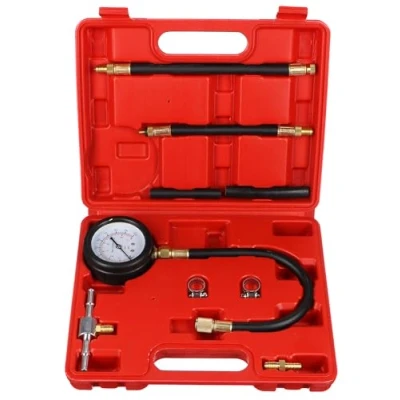 Practical 10-piece set for testing the compression of petrol engines SIXTOL Mechanical Engine Tester 10 with pressure gauge, replacement hoses and carry case. The kit includes three flex hoses with threaded end piece, two hose clamps, T-attachment, adapters and two short hoses. Practical 10-piece set for testing the compression of petrol engines SIXTOL Mechanical Engine Tester 10 with analogue pressure gauge with a scale 0-7 bar and 0-100 psi. This kit helps to uncover the wear and leaks around the piston rings and other imperfections as the cause of engine pressure reduction. The tools are stored in a plastic case that makes their mobile storage easier. Main advantages: easy to use; drain valve; fixed case for transport and storage; contents of the set: 1 x analogue pressure gauge 0-7 bar and 0-100 psi; 3 x long flex hose with thread; 2 x short flexible hose with free end; 2 x attachment; 2 x hose clamp; 1 x plastic case; application: testing compression of petrol engines, uncovering leaks in Motor Motor Technical parameters Type of pressure gauge: analogue; Scale of the pressure gauge: 0-7 bar and 0-100 psi; Material: aluminium, rubber; Package dimensions: 6.5 x 22 x 27 cm; Weight: 0.8 kg