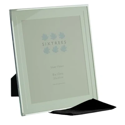 Sixtrees 265380(MIF) Park Lane Silver Plated 8 x 10 inch Photo Frame with Double Soft White Mount. Complete microfibre polishing Cloth.