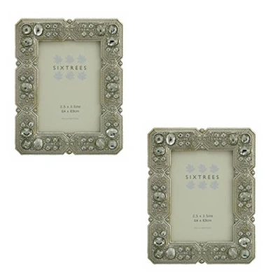 Sixtrees a Twinpack of Antique Vintage and Shabby Chic Style silver metal photo frames with beads crystals for 3.5" x 2.5" (64 89mm) picture Maud