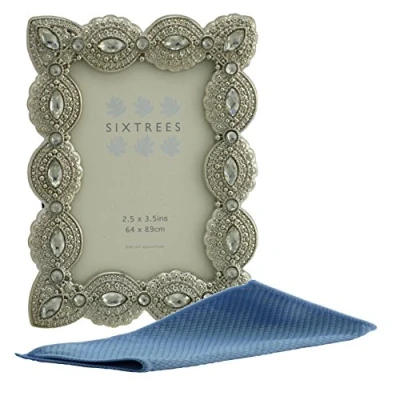 A range of high quality cast metal and crystal photo frames for 3.5 x 2.5 inch photo. A stylish way to display a precious photo or image. Ideal for displaying in virtually any style of decoration.This range is ideal for a wedding and anniversary gift.Try to present them in a group for maximum impact. Complete with velvet back stand, standing style to display only.The overall frame size is 12 x 10 cm. This frame is supplied bubble wrapped and boxed making it an ideal gift.