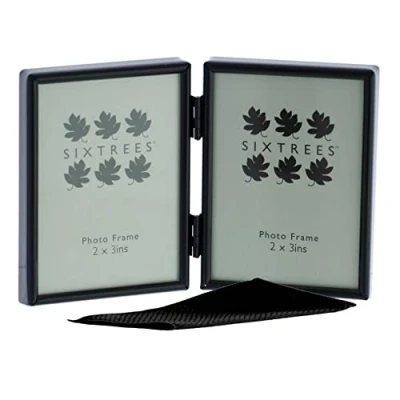 Sixtrees Cambourne 3 400 02 Black Metal Folding Photo Frame for two 3x2 inch (76mm x 51mm) Pictures Complete with microfibre polishing cloth.