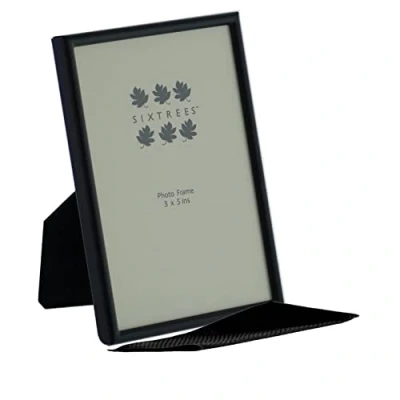 Sixtrees Cambourne 3 400 35 Satin Black Metal 5x3 inch Photo Frame Complete with microfibre polishing cloth.