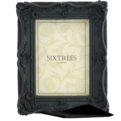 Sixtrees Chelsea 5 253 57 Ornate Vintage Swept Shabby Chic Black 7x5 inch Photo frame with Microfibre glass cleaning cloth.