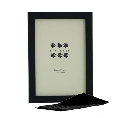 Sixtrees Elite 2 122 46 Black Metal 4 x 6 inch Photo Frame. Wide profile, satin finish, real glass. Complete with microfibre polishing cloth.