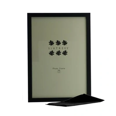Sixtrees Elite 2 122 A4 Black Metal Photo Frame. Wide profile, satin finish, real glass. Complete with microfibre polishing cloth.