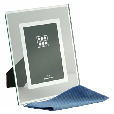 Sixtrees Flat Glass & Mirror Line inset Photo Frame for a 6" x 4" picture Lenton Complete with Microfibre Cleaning Cloth